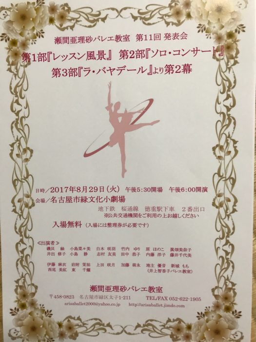 バレエを習っている高校生の生徒さんが、夏にバレエの発表会があるのでパンフレットを持ってきました。